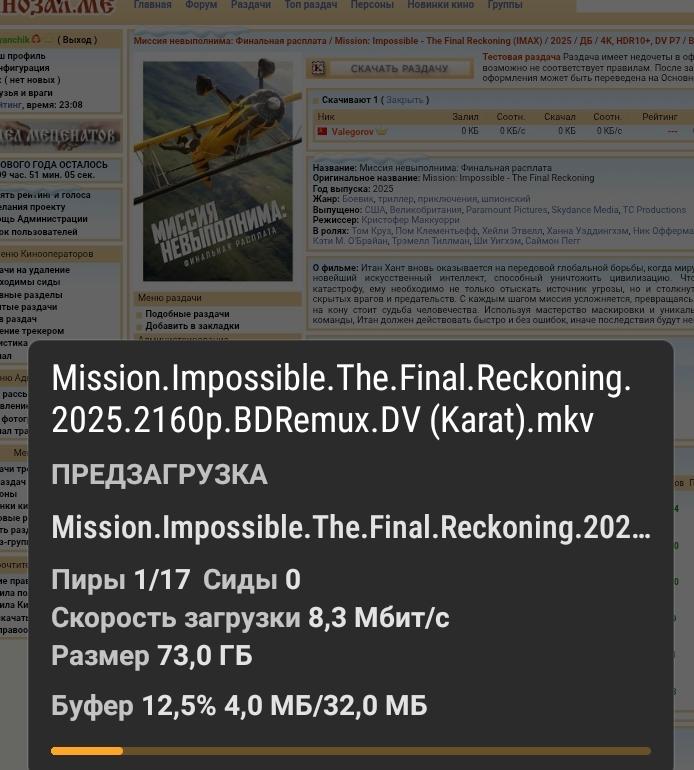 О фильме: Итан Хант вновь оказывается на передовой глобальной борьбы, когда миру начинает угрожать новейший искусственный интеллект, способный уничтожить цивилизацию. Чтобы предотвратить катастрофу, ему необходимо не только отыскать источник угрозы, но и столкнуться с множеством скрытых врагов и предательств. С каждым шагом миссия усложняется, превращаясь в опасную игру, где на кону стоит судьба человечества. Используя мастерство маскировки и уникальные навыки своей команды, Итан должен действовать быстро и без ошибок, иначе последствия будут непоправимы.