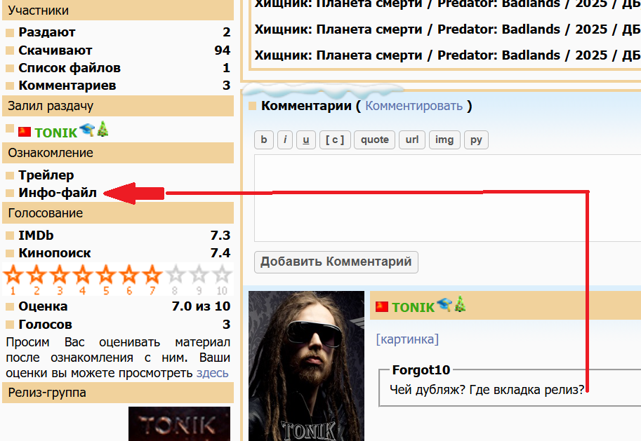 Раздачи :: Кино - Фантастика :: Хищник: Планета смерти / Predator: Badlands / 2025 / ДБ, СТ / 4K, HEVC, HDR10+, Dolby Vision P8 / WEB-DL (2160p) :: Комментарии