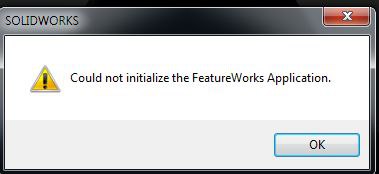"could not initialize the featureworks application solidworks"