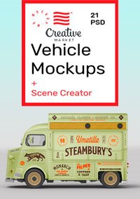 Creative Market (Макеты транспортных средств - Макеты автомобилей) / Vehicle Mockups - Car Mockups / Клипарты / 2021 / PSD, JPEG, AI