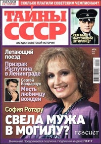 Описание: Издание посвящено исключительно тайнам СССР. Сенсационная правда о главных событиях нашего прошлого. Тайны Кремля, секреты спецслужб, история любви знаменитых людей, великие победы и ужасные катастрофы. Секретные архивы, исторические расследования, советская мистика. Статьи издания написаны не только журналистами, но и писателями-историками и учеными.