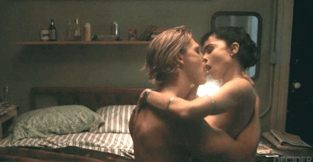 Поскольку актриса Зои Кравиц очень миниатюрна, а актер Остин Батлер очень высок, Аронофси искусно использует кровать, чтобы визуально уравнять пару. Эффект получается невероятно красивым. Два человека с божественными фигурами обнимают друг друга, их взгляды встречаются, их бёдра прижаты друг к другу.