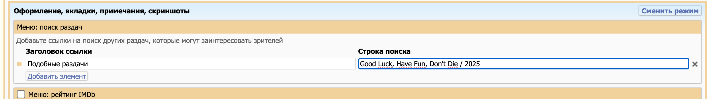 Чтобы сработал поиск и были подобные раздачи.